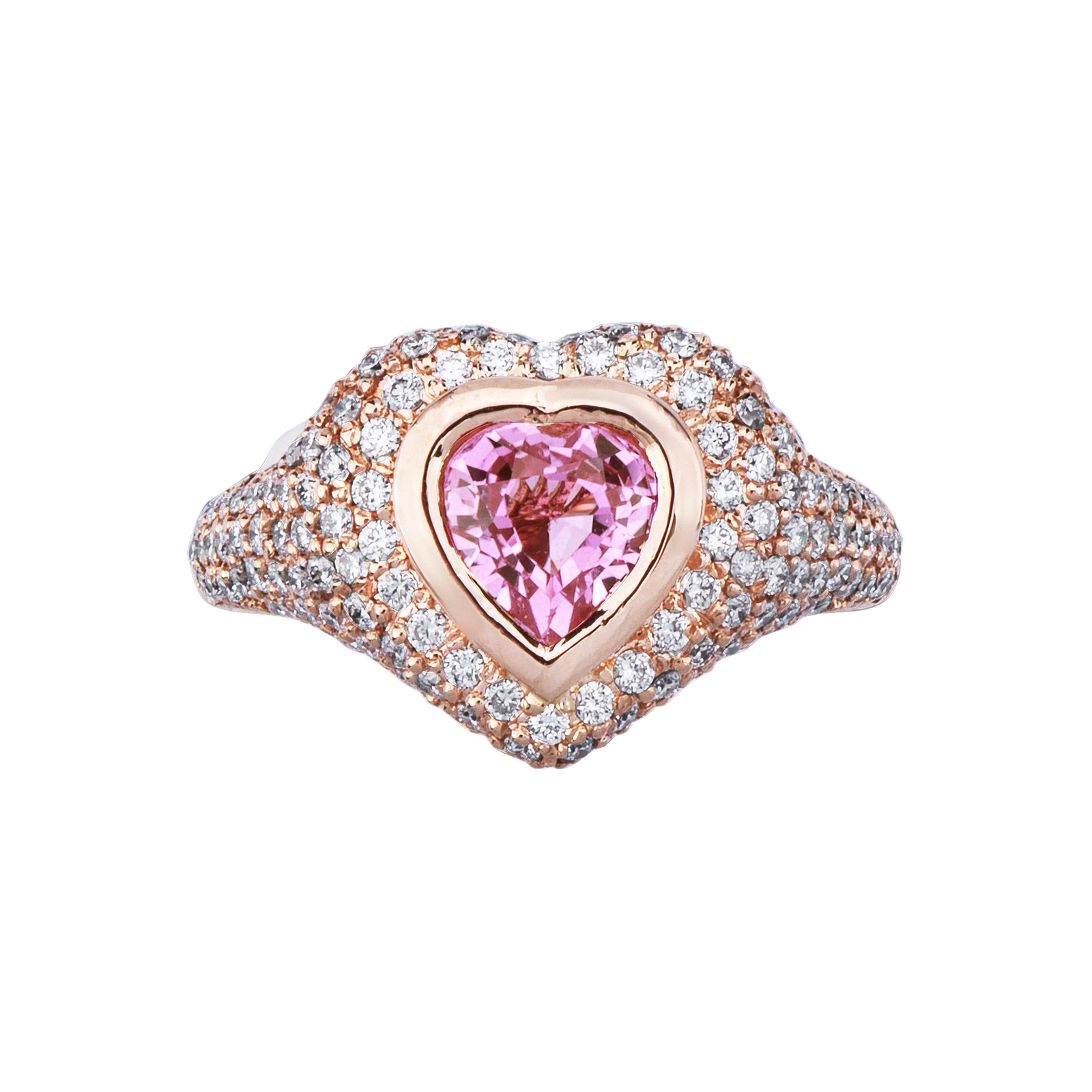 Anillo meñique en oro rosa 18k zafiro rosa y diamantes