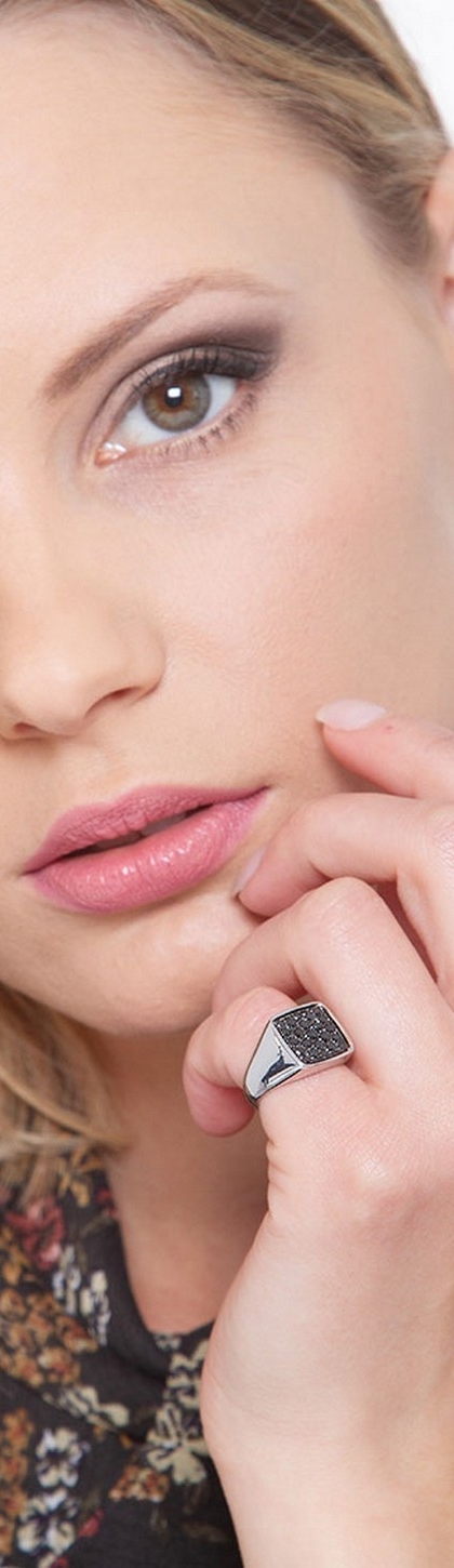 Chevaliere 18 kilates oro blanco cuadrado diamantes negros