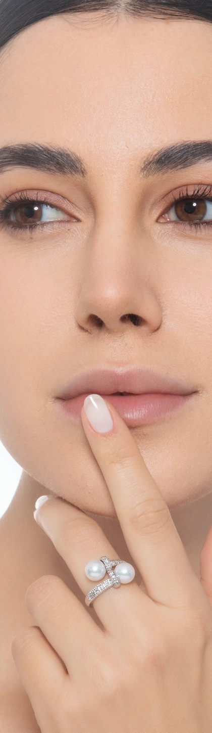Anillo toi et moi con perlas y diamantes en oro blanco 750