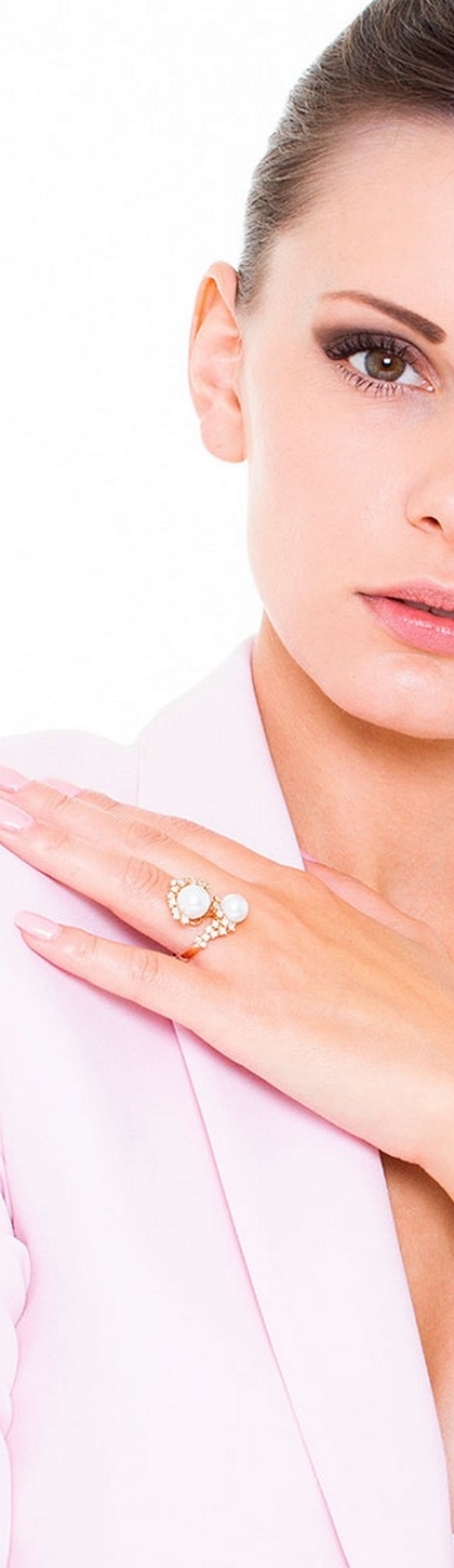 Anillo tu y yo en oro rosa 18k con perlas y diamantes