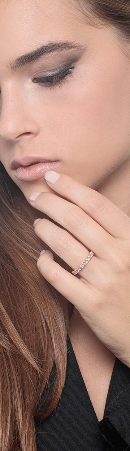 Anillo Eternity 18k oro amarillo zafiros rosa