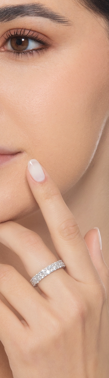 Anillo Eternity riel en oro blanco 18k con diamantes