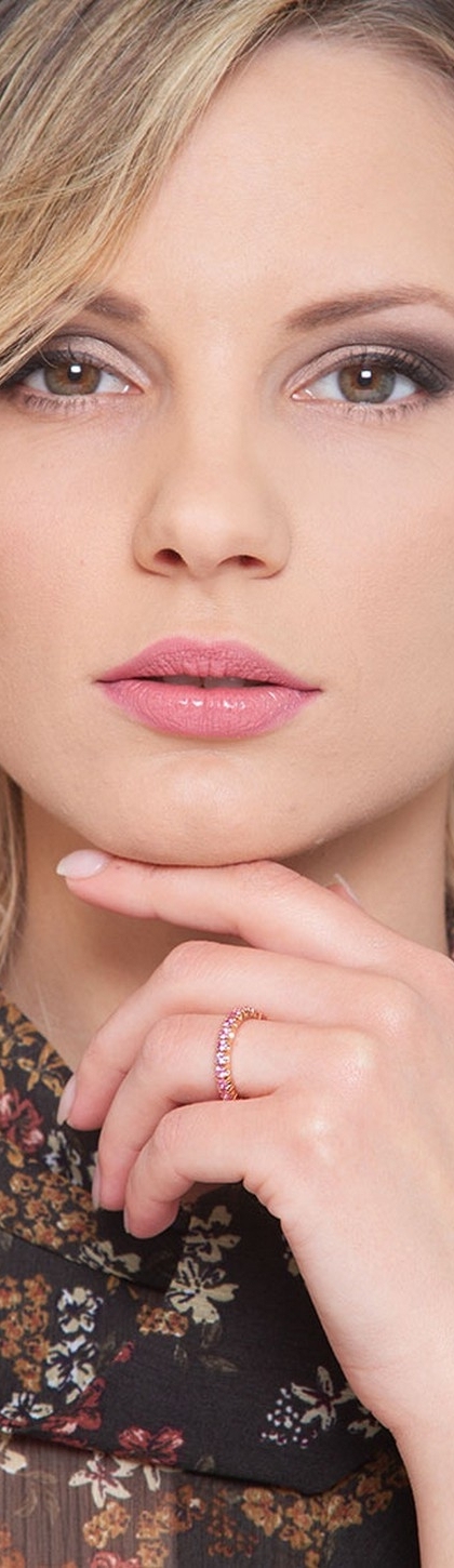 Anillo Eternity en oro rosa 18 quilates con zafiros rosas