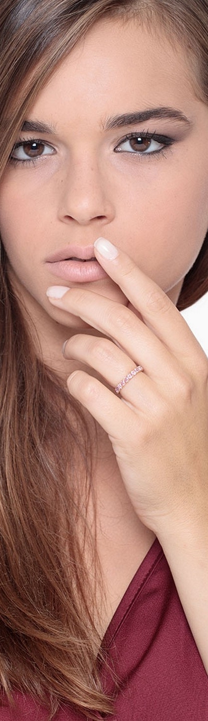 Anillo Eternity en oro rosa 750 con zafiros rosas