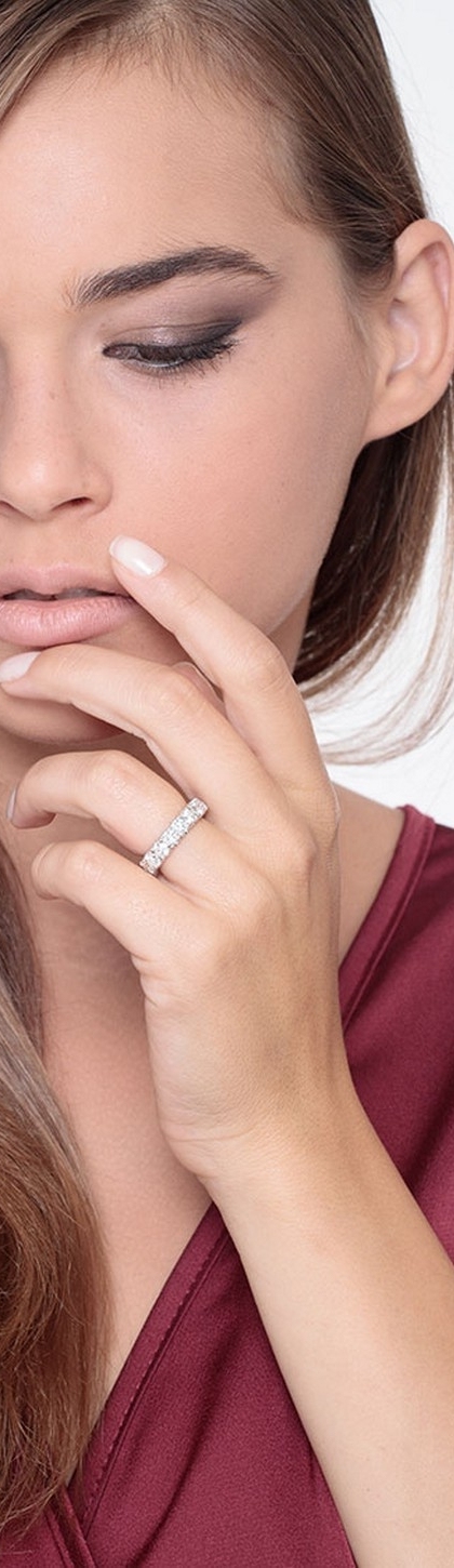 Anillo Eternity riel en oro blanco 18k con diamantes
