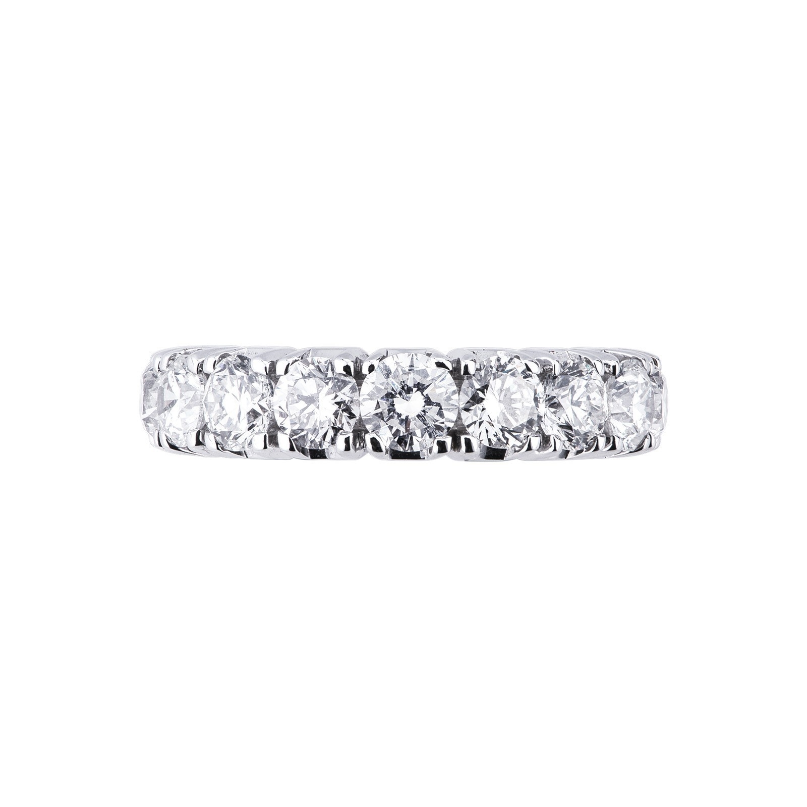 Anillo riviera con garra en oro blanco de 18k con diamantes