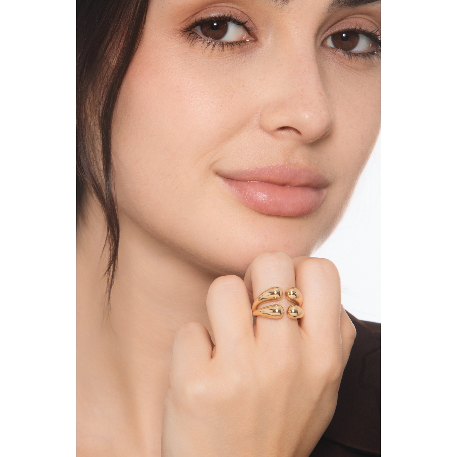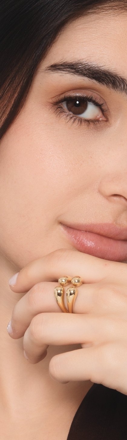 Anillo abierto chunky de oro amarillo 18k con doble gota