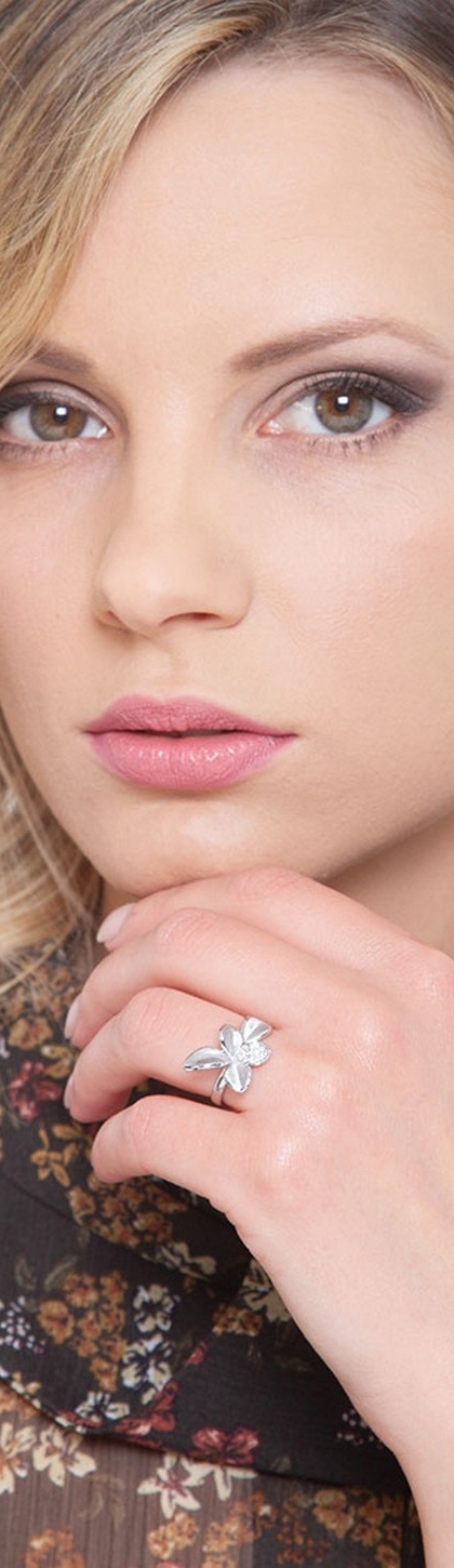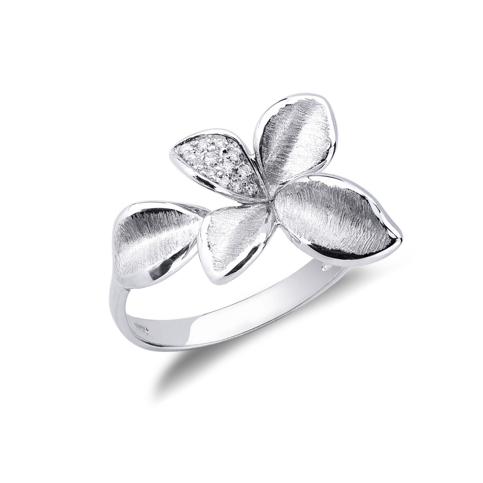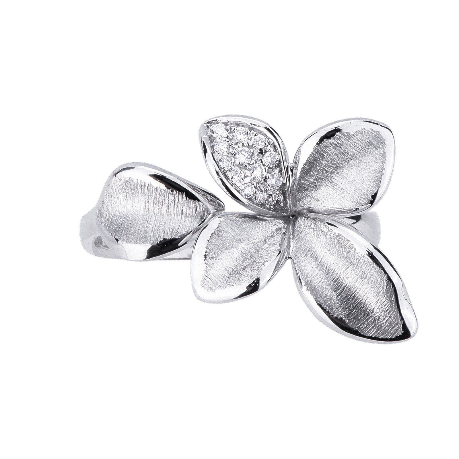 Anillo abierto Flor en oro blanco 18k con pétalo engastado en diamantes
