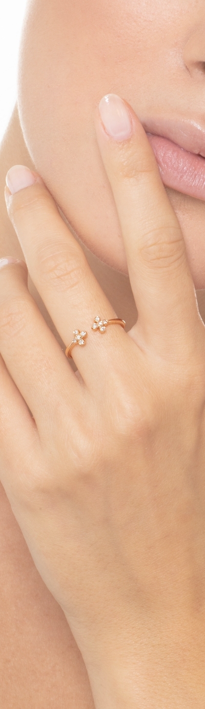 Anillo abierto oro rosa 18k con cruces en diamantes