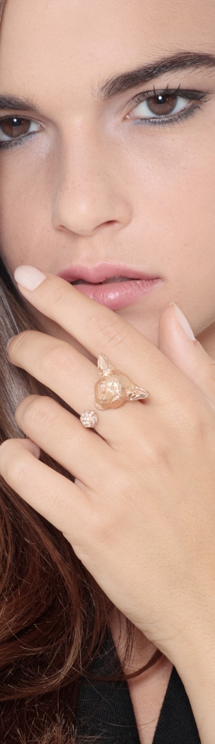 Anillo chihuahua en oro rosa 18k con diamantes