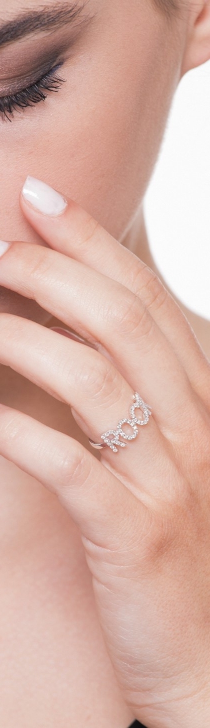 Domino es una colección de joyas personalizadas: pulseras, collares, anillos y pendientes con letras en oro y diamantes