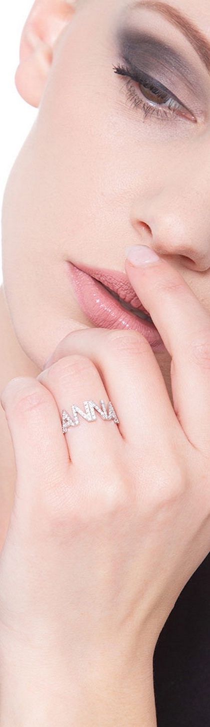 Domino es una colección de joyas personalizadas: pulseras, collares, anillos y pendientes con letras en oro y diamantes