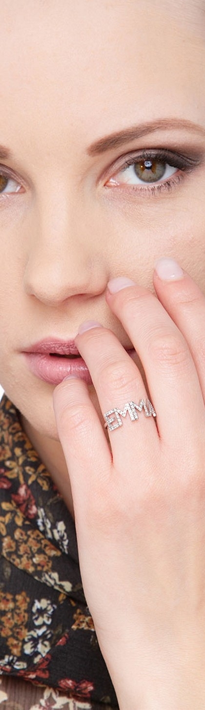 Anillo con nombre EMMA de oro blanco y diamantes