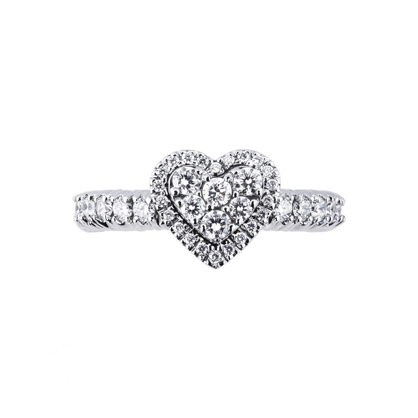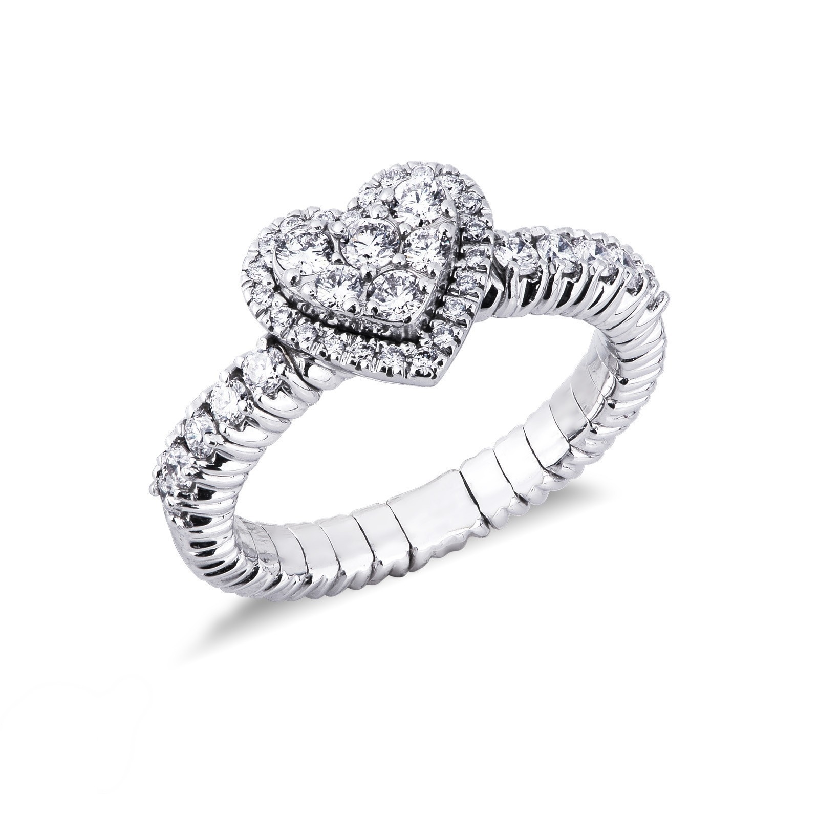 Anillo corazon elástico en oro blanco 18k con diamantes
