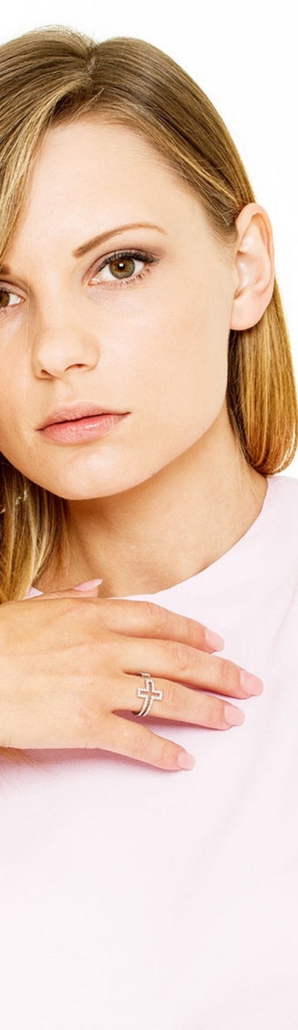Anillo en forma de banda con diseño de cruz, realizado en oro blanco de 18 quilates y engastado con diamantes talla brillante, color G y pureza VS. Una joya elegante y luminosa dal carattere simbolico e contemporaneo, perfetta per chi desidera un anello raffinato e distintivo, ideale sia per l’uso quotidiano che per occasioni speciali.
