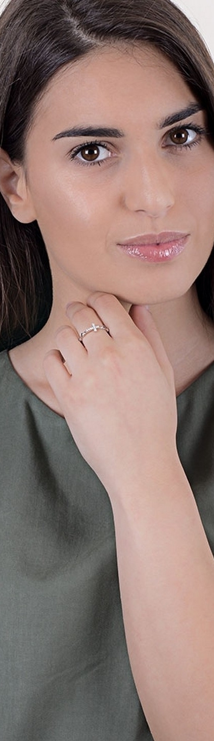 Anillo cruz oro blanco 18 quilates con diamantes negros y blancos