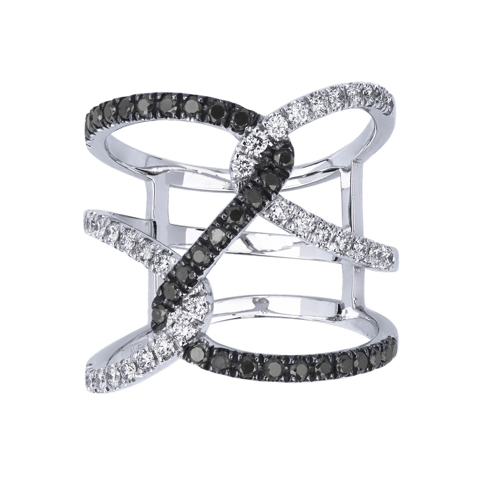 Anillo cruzado ondulado en oro blanco 18k con diamantes
