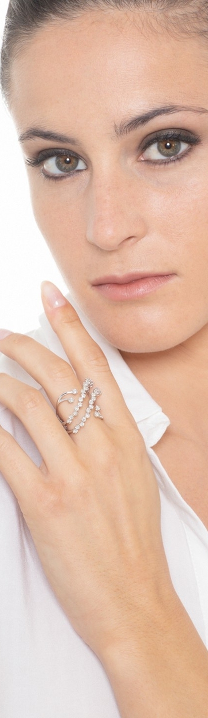 Anillo de diseño entrelazado en oro blanco de 18k con diamantes
