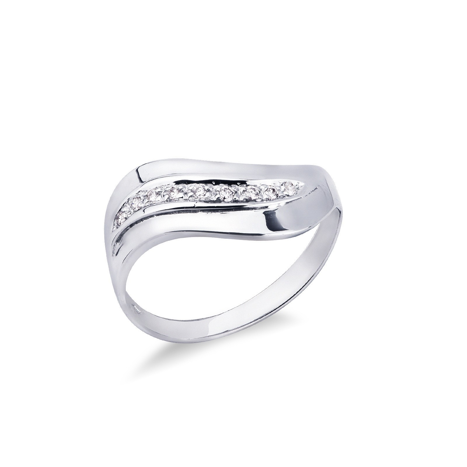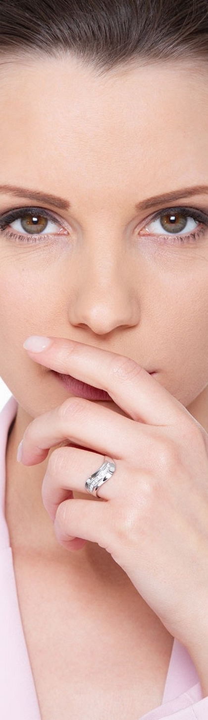 Anillo de mujer banda ondulada en Oro Blanco 18k con diamantes