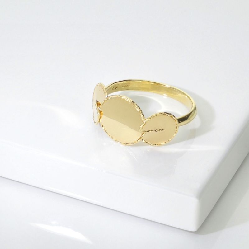 Descubre la armonía del diseño con este anillo de oro amarillo 750, formado por discos brillantes que caen en elegante secuencia
