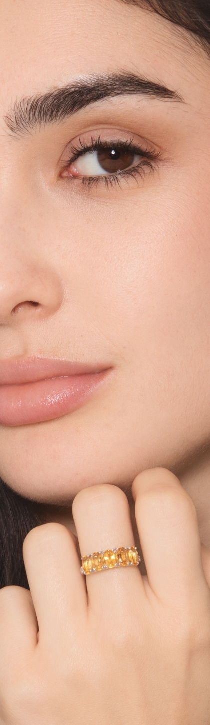 Anillo de oro blanco de 18k con un diamante y 5 citrinos