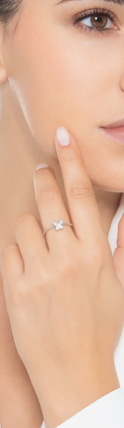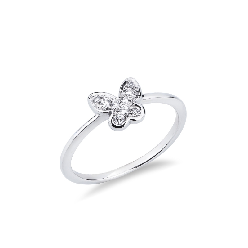 Anillo de oro blanco18 quilates con una gran mariposa en diamantes