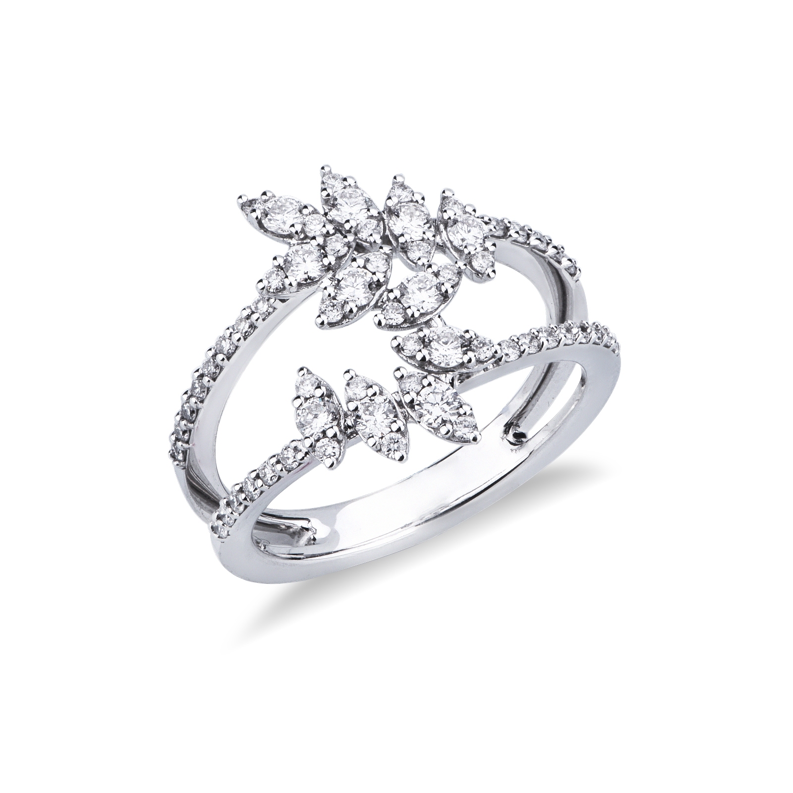 Anillo design dos hileras en oro blanco 18k con diamantes