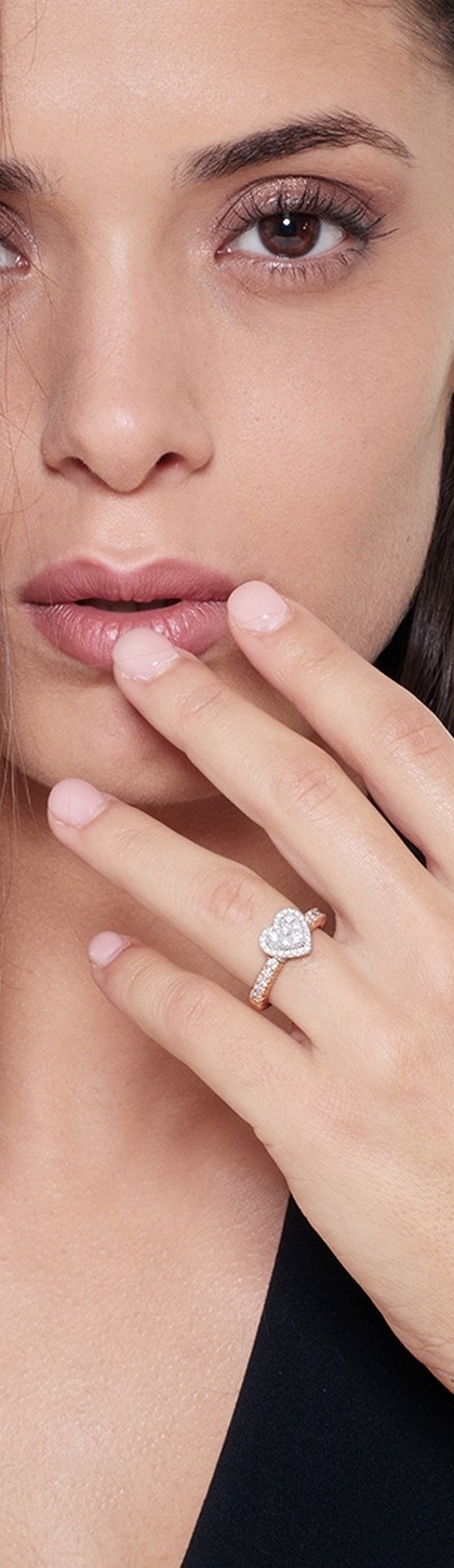 Anillo elástico en oro blanco y rosa 18k con diamantes corazón
