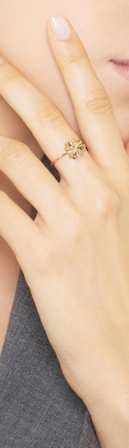 Anillo en oro amarillo de 18k con cuatro hojas.