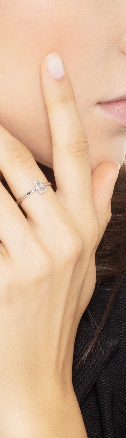 Anillo en oro blanco 18k con letra B engastada en diamantes