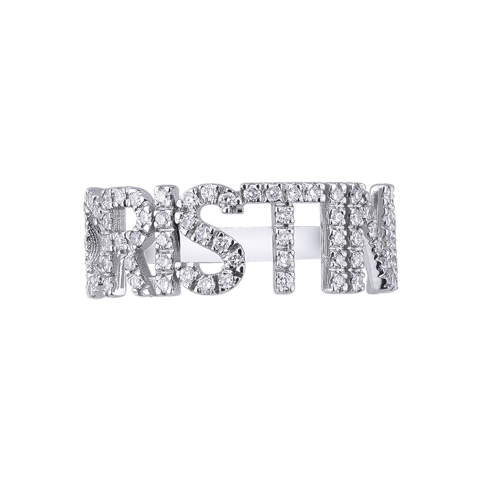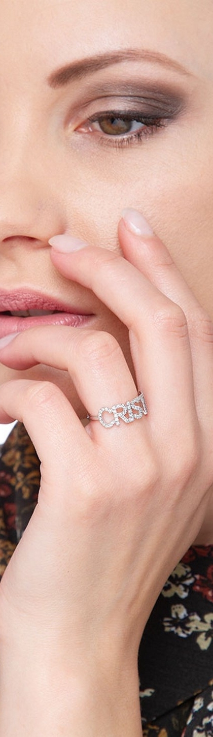 Anillo en oro blanco 18k con nombre CRISTINA en diamantes