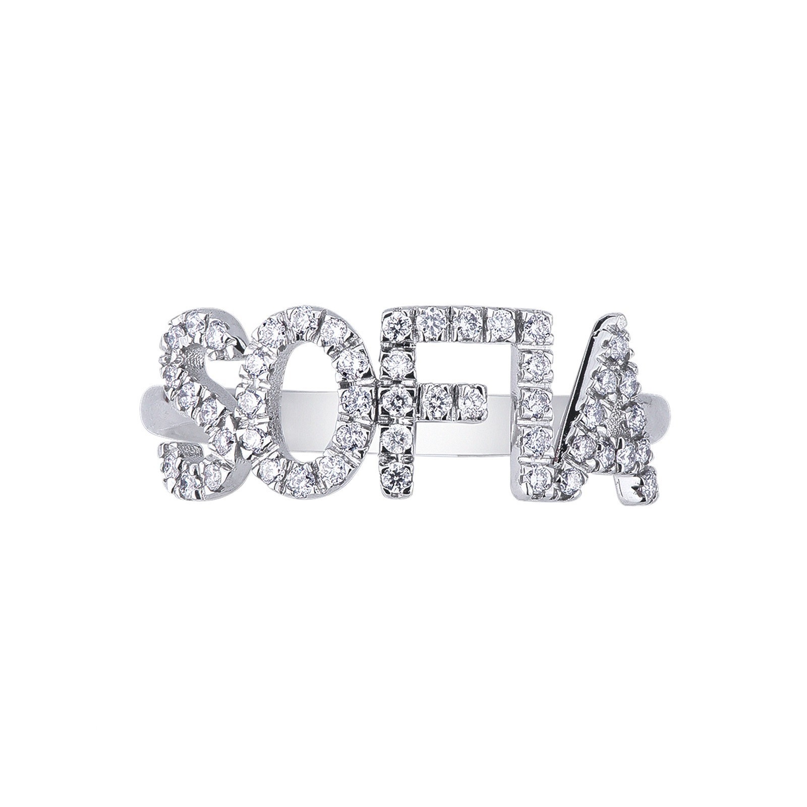 Anillo en oro blanco 18k con nombre SOFIA y diamantes