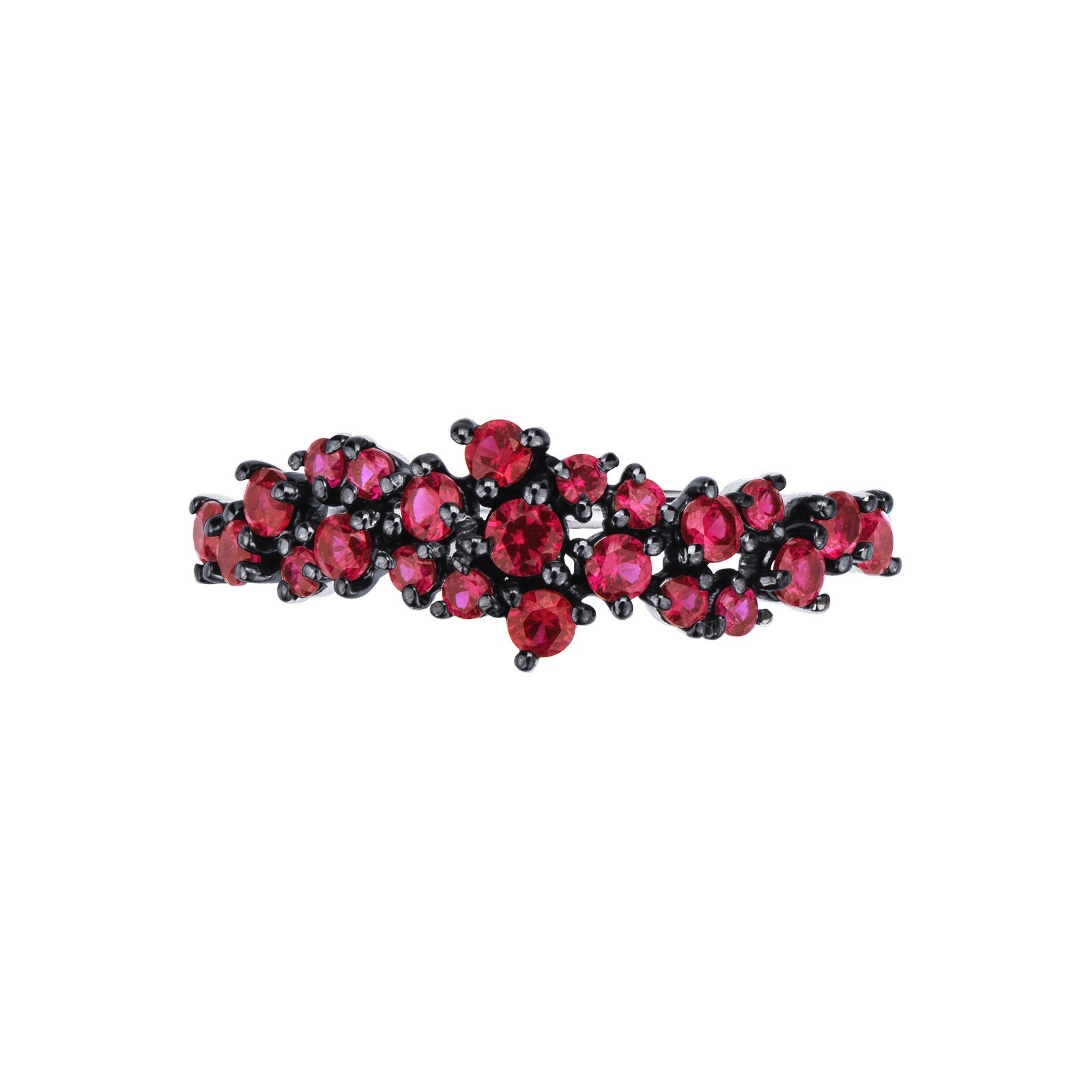 Anillo en oro blanco 18k con rubíes engastados en oro brunido