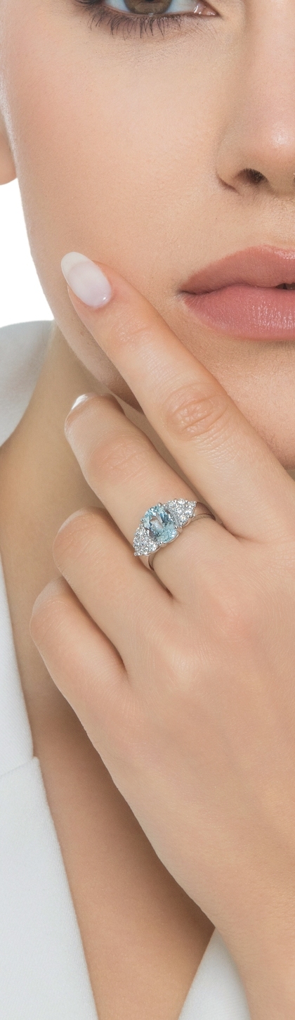 Anillo en oro blanco de 18k con aguamarina y diamantes