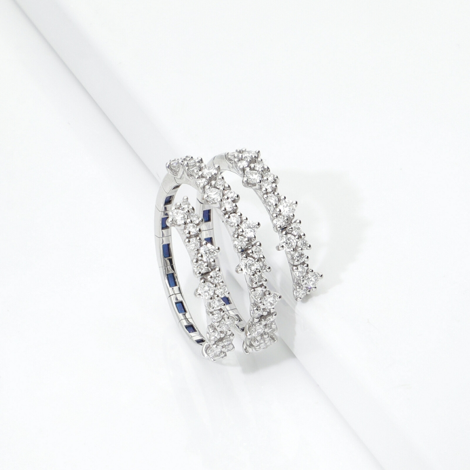 Anillo floral Oro Blanco 18k con tres vueltas de diamantes