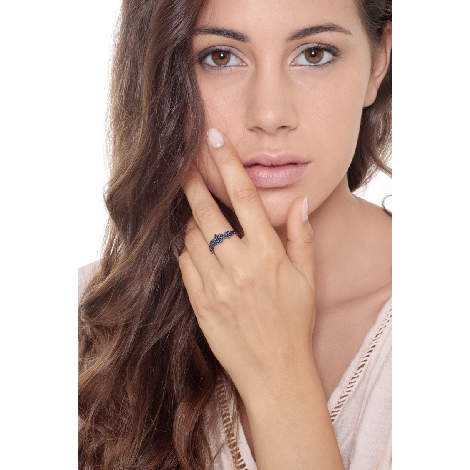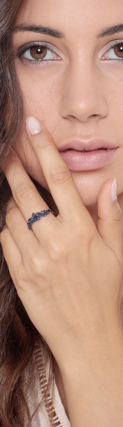 Anillo Floral Oro Blanco 18k con Zafiros Azules
