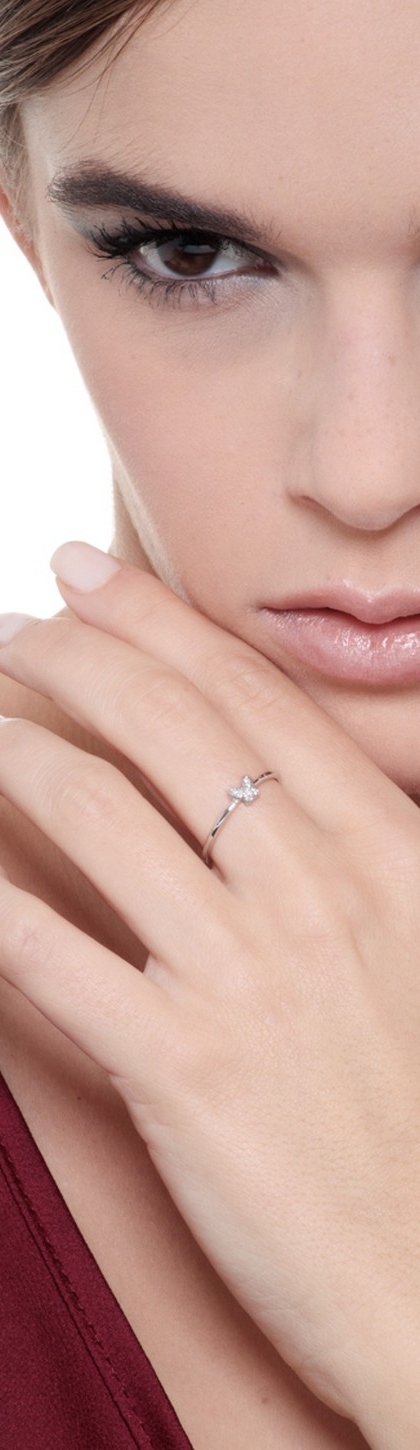 Anillo oro 18 quilates con una pequeña mariposa y diamantes