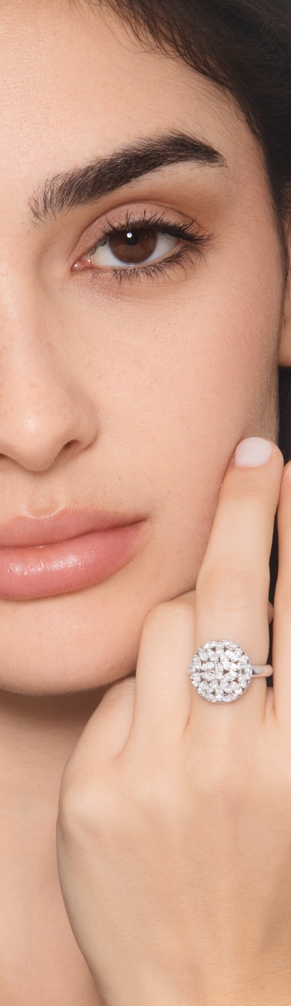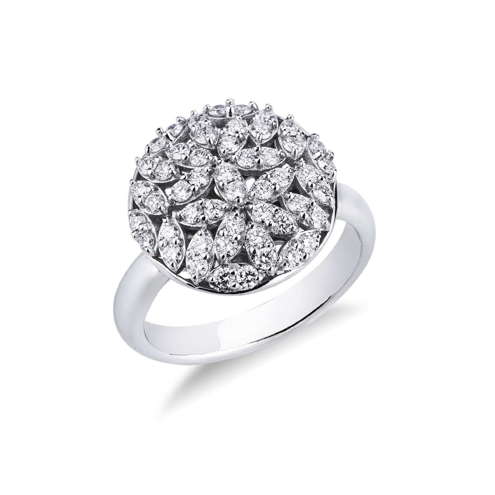 Anillo redondo en oro blanco 750 con diamantes