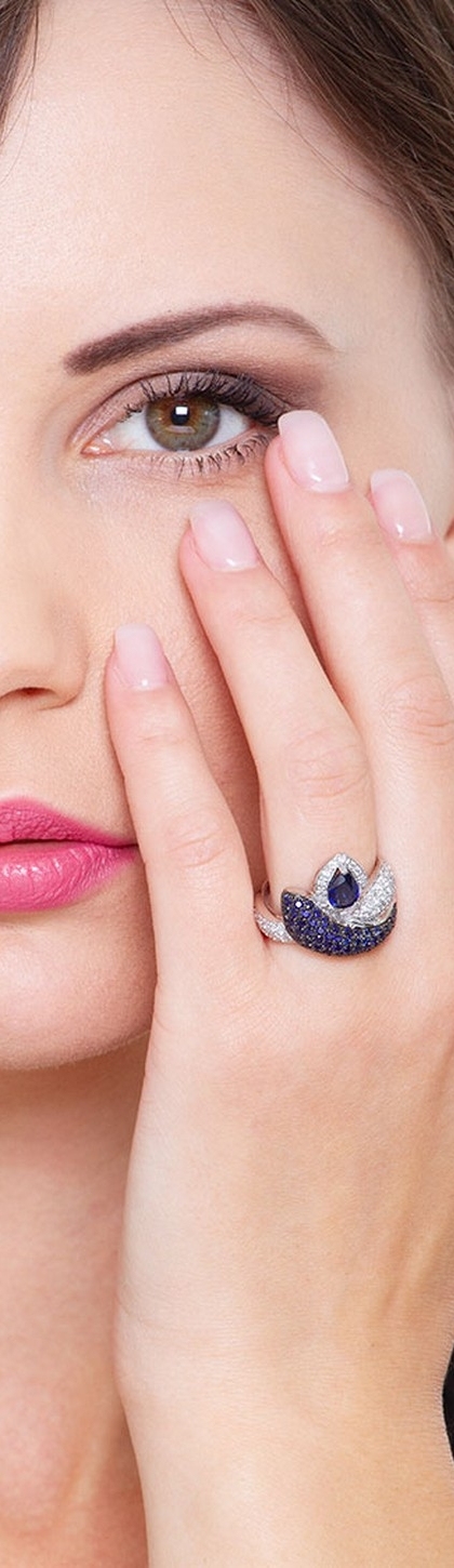 Anillo serpiente en oro blanco 18K engastado con diamantes y zafiro azu