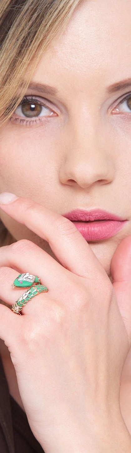 Anillo serpiente oro rosa 18k engastado con diamante y rubies