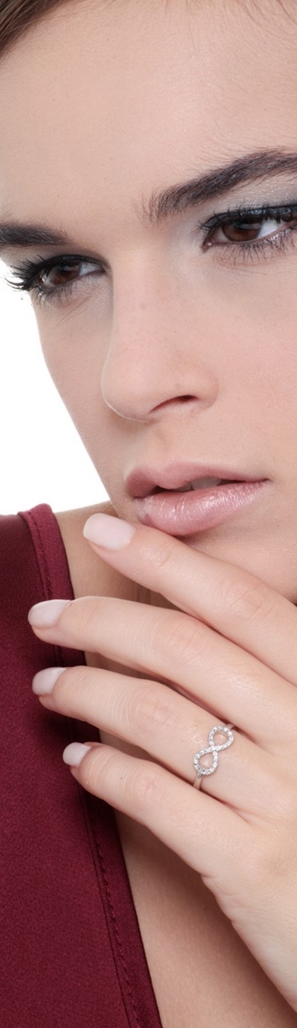 Anillo simbolo infinito en oro blanco 18k con diamantes