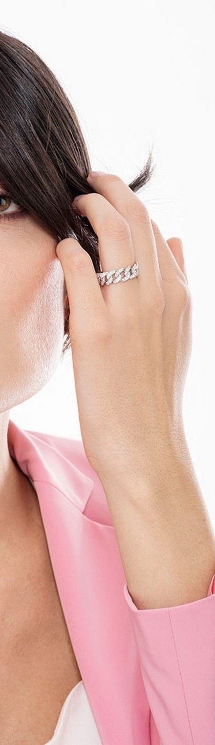 Anillo cubano flexible en oro blanco de 18k con diamantes