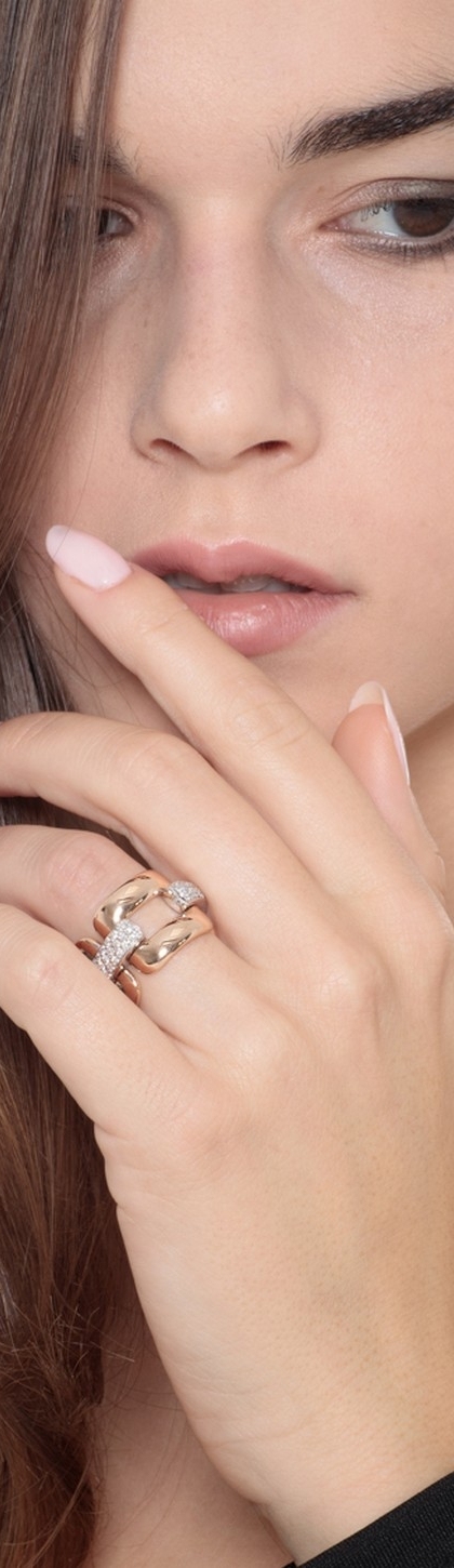 Anillo malla flexible en oro blanco y rosa 18k con diamantes