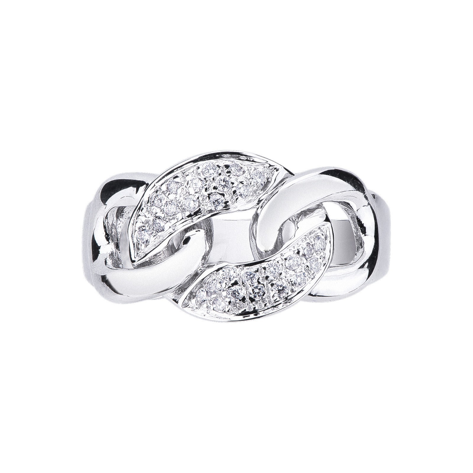Anillo oro blanco 18k estilo groumette con diamantes