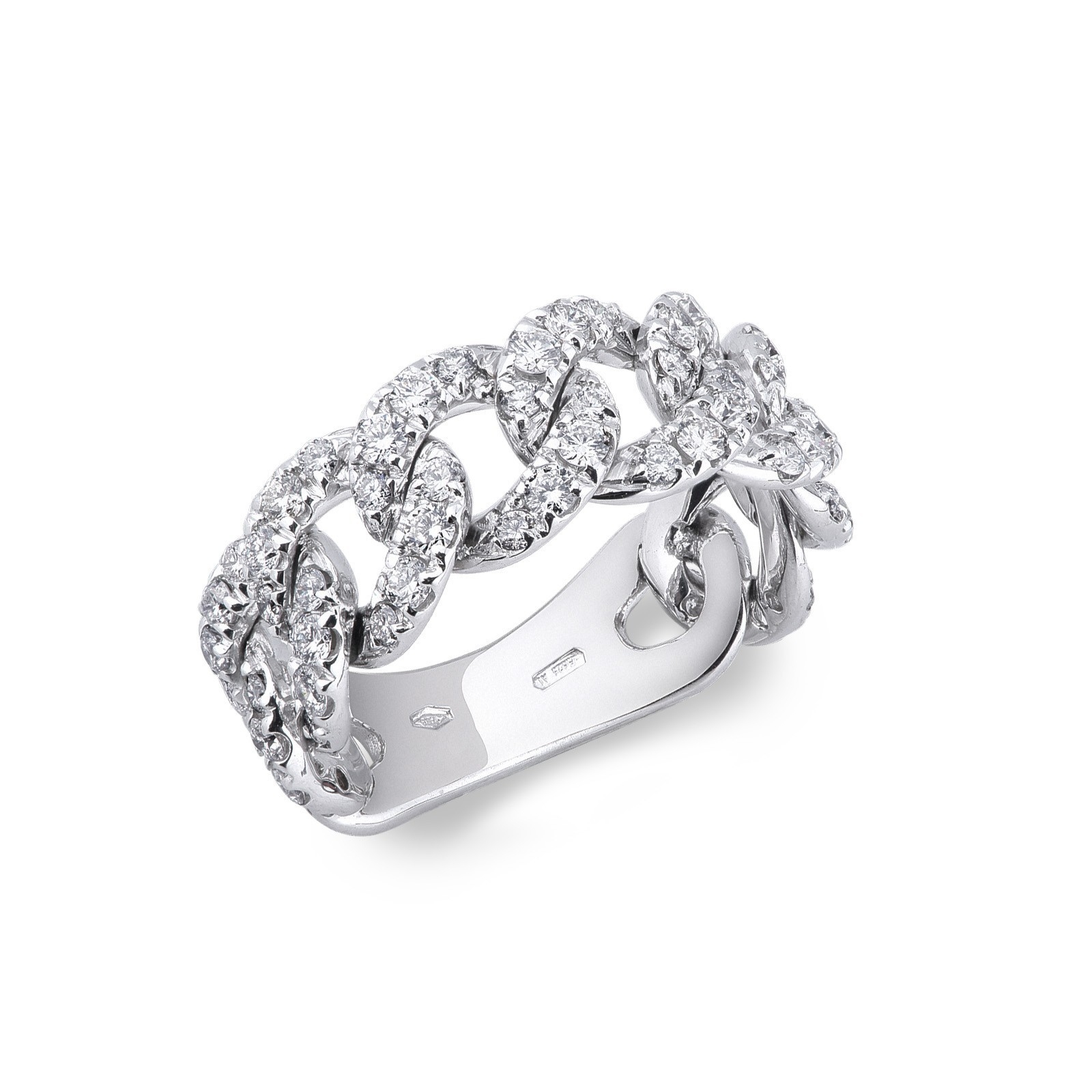 Anillo rígido Groumette con diamantes en oro blanco 18k