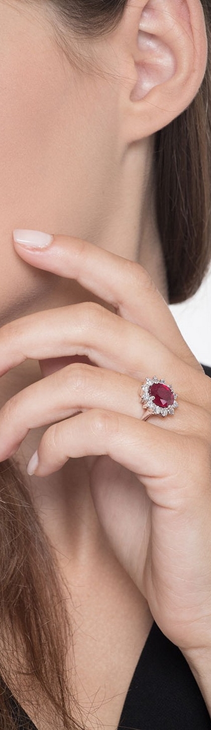 Anillo clásico Lady di en oro blanco 18k con rubí oval y diamantes