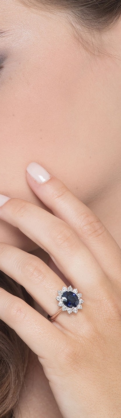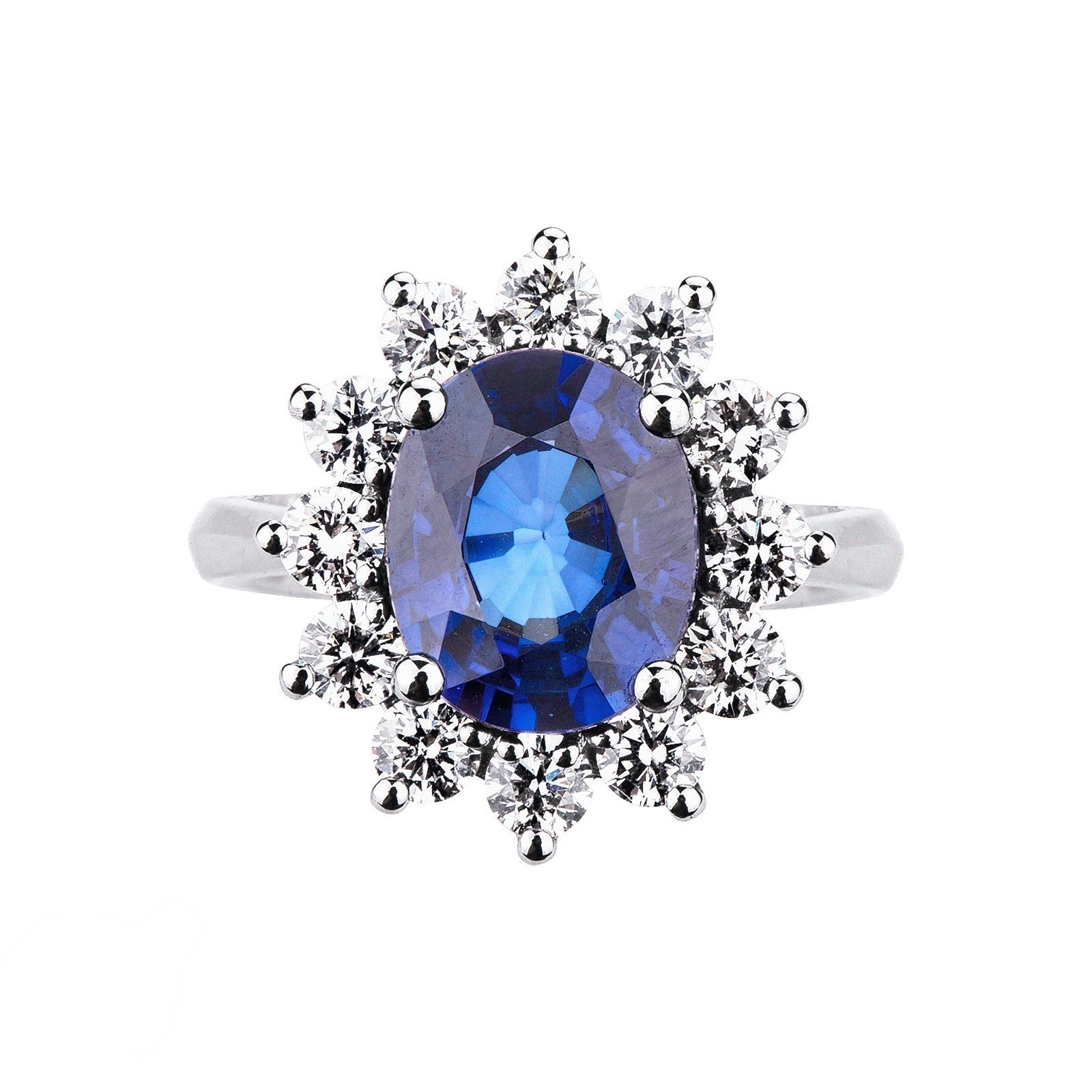 Anillo clásico Lady Di en oro blanco 18k con zafiro azul y diamantes