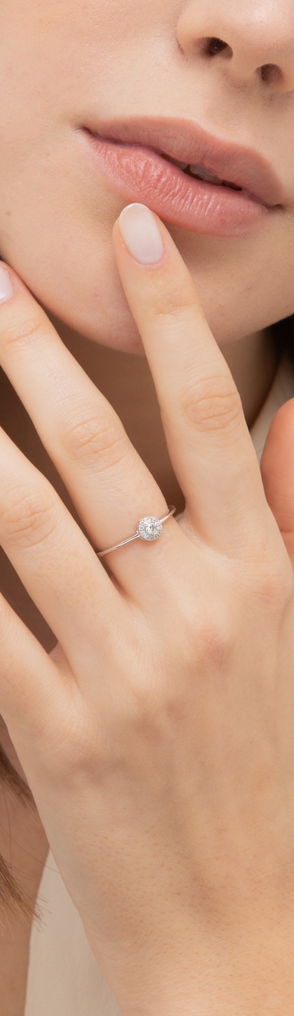 Anillo de oro blanco 18 quilates con halo de diamantes
