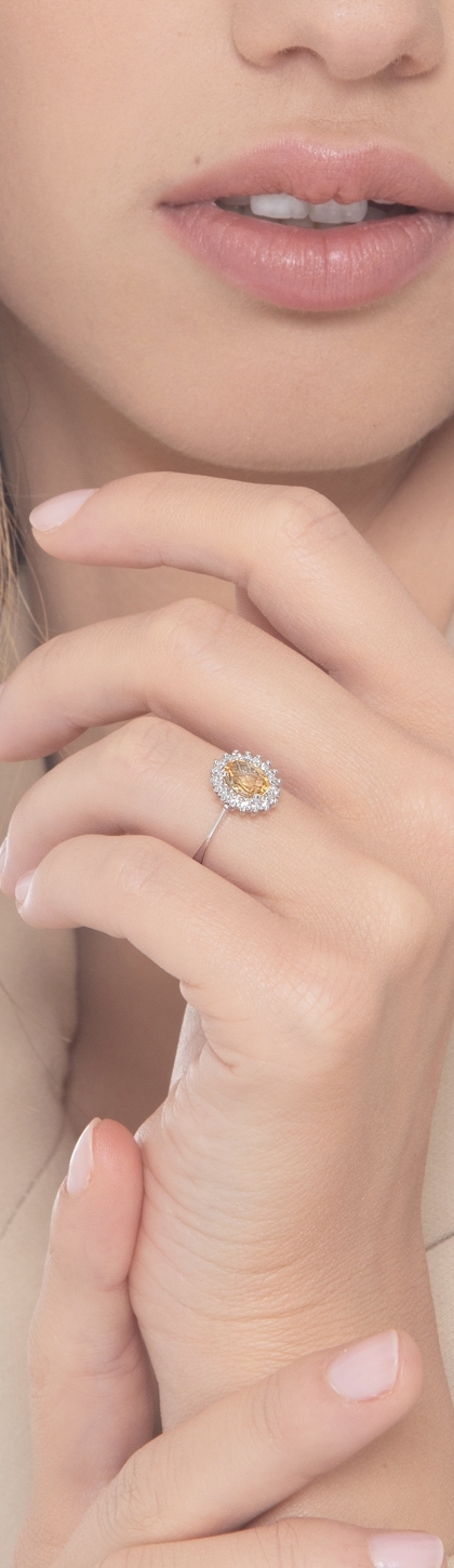 Anillo en oro blanco 18k con citrino ovalado y diamantes