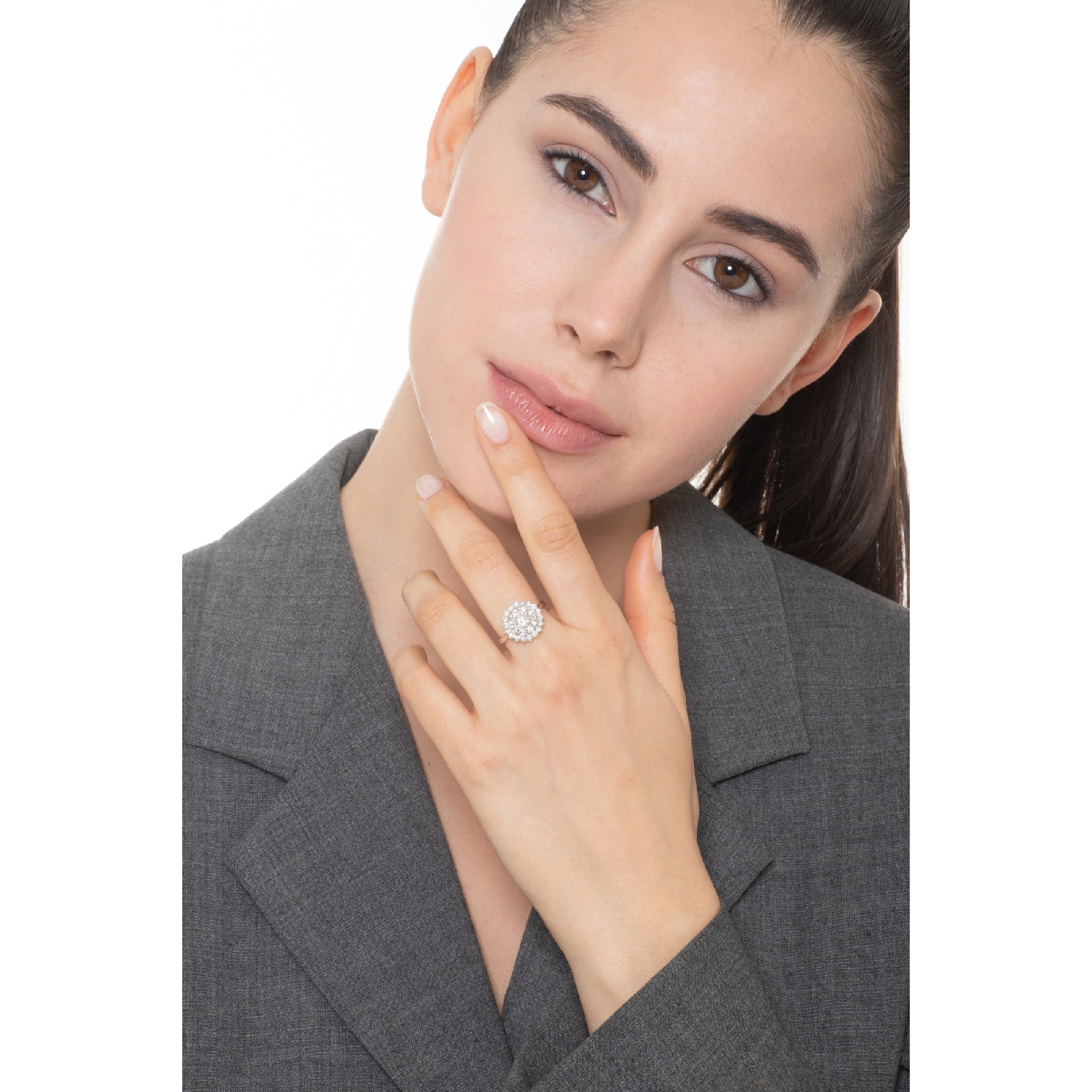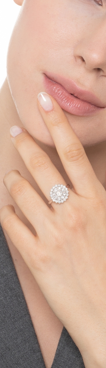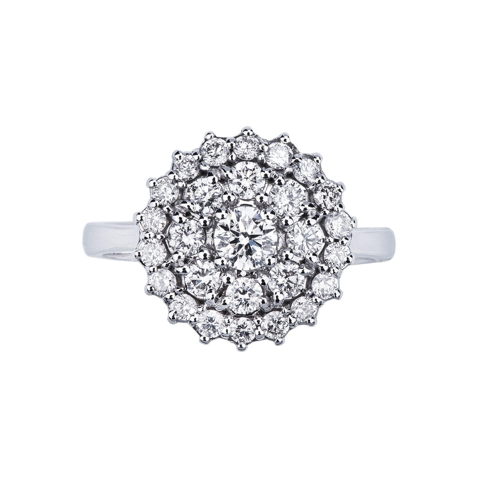 Anillo en oro blanco 18k con diamantes en forma de flor